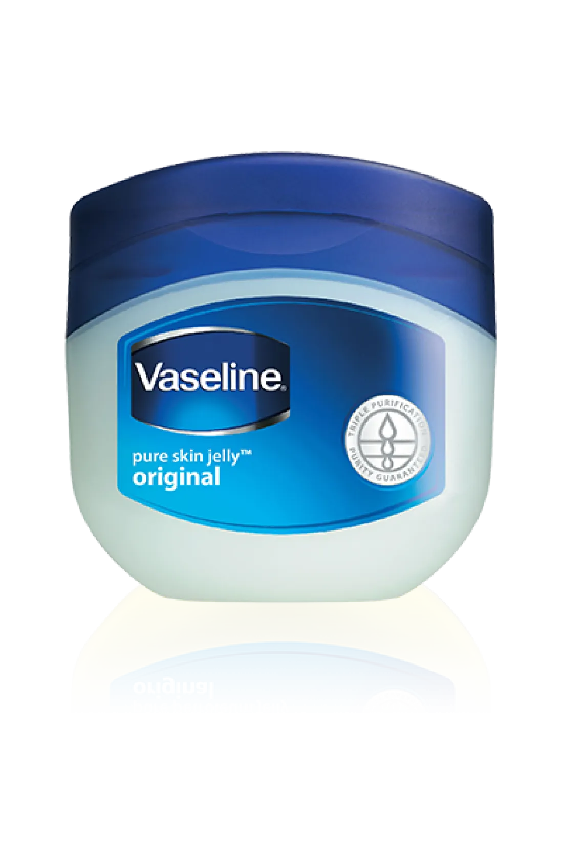 Travel-size petroleum jelly for dry skin, lips, and minor cuts — classic skin protectant.